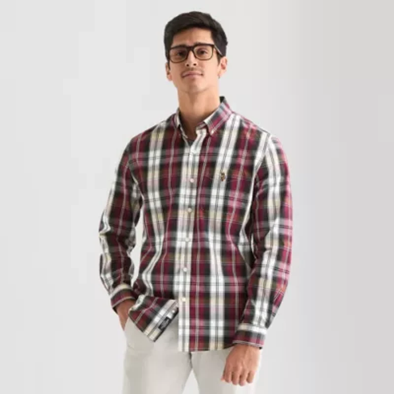 This U.S. Polo Assn. men's shirt is a stylish update to your fall and winter rotation. Made from stretch-cotton in a plaid pattern, this button-down has a point collar, an embroidered logo and long cuffed sleeves. Wear it with jeans or pants.