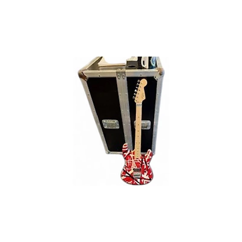 Used EVH Striped Series Frankie Red with Black and White Stripes Solid Body Electric Guitar