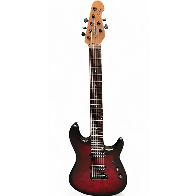 Used Sterling by Music Man cutlass jason richardson 7 string dark scarlett burst satin Solid Body Electric Guitar
