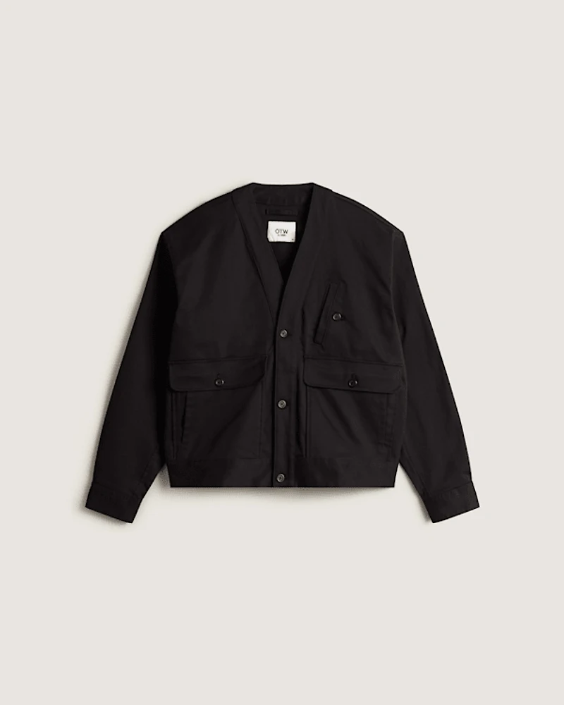 This jacket brings a utilitarian edge to your everyday look. The cropped silhouette offers a modern update, while multiple pockets provide both style and function. With its V-neck design and button-front closure, this piece effortlessly combines practicality with a contemporary vibe.