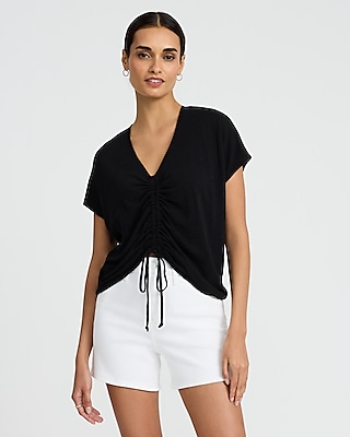 V-Neck Short Sleeve Ruched Tie Front Tee