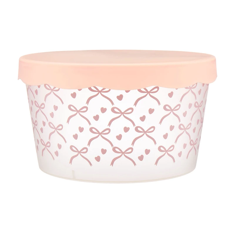 Adorned with a delightful design of pink bows and hearts, this food storage bowl captures the spirit of Valentine's Day, making it both a functional and decorative addition to your kitchen. The soft pink lid adds a touch of elegance while ensuring a secure, airtight seal to keep your food fresh for longer.