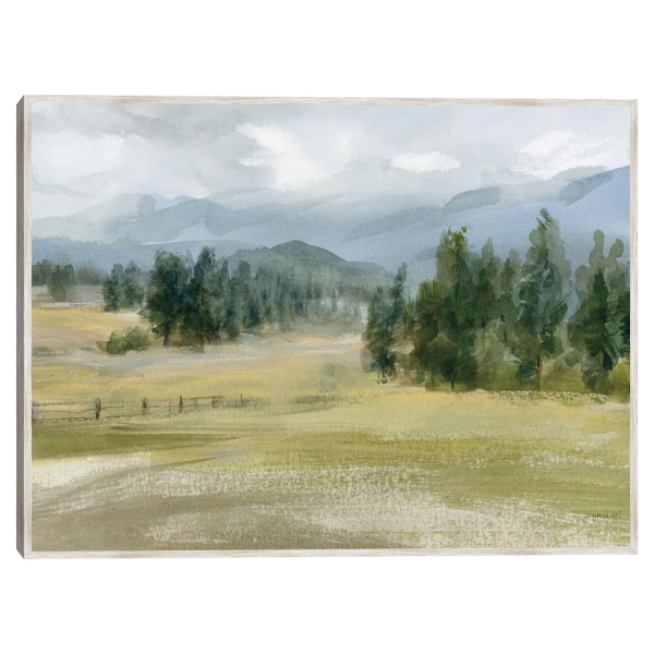 Escape to a peaceful valley of nature's bliss with the Valley Retreat Framed Canvas Art Print. This expansive view will look lovely on your wall for you to relax with its imagery! Overall dimensions Width: 41 in. Depth: 1.5 in. Height: 31 in. Printed on stretched, polycotton blend canvas Gray wood frame around wrapped canvas Features a landscape subject Hues of blue, gray, green, orange, and white Artist: Danhui Nai Weight: 7 lbs. Hangs from back-mounted hardware; sawtooth hangers included Care: Dust with a soft, dry cloth. This item is available at Kirklands.com only, not available in stores. Please note: this item cannot be shipped to APO/FPO addresses.