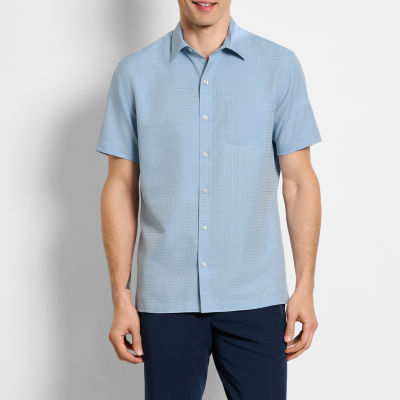 Van Heusen Mens Moisture Wicking Regular Fit Short Sleeve Grid Button-Down Shirt