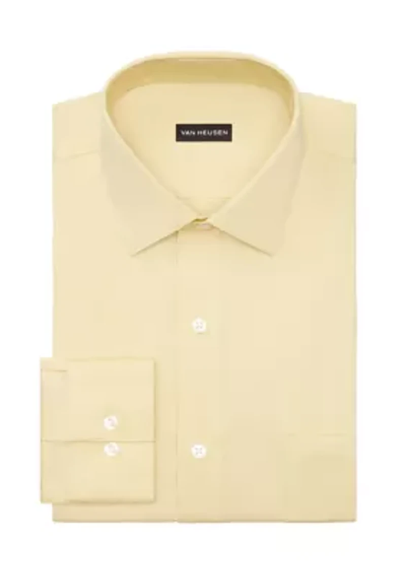 Van Heusen’s specially treated fabric for the most powerful wrinkle protection straight out of the dryer. This dress shirt also features stretch fabric and an added Flex Collar that expands up to half an inch. Crafted in regular fit for a relaxed, classic look. Button closure Spread collar Long sleeves Imported Material & Care Cotton, polyester, spandex Machine washable