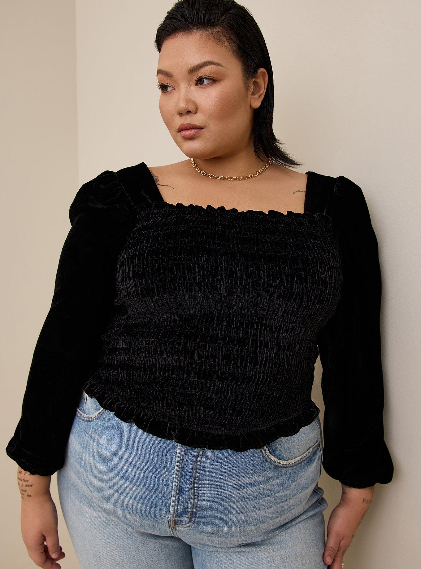Velvet Smocked Blouson Sleeve Crop Top in Chattanooga, TN