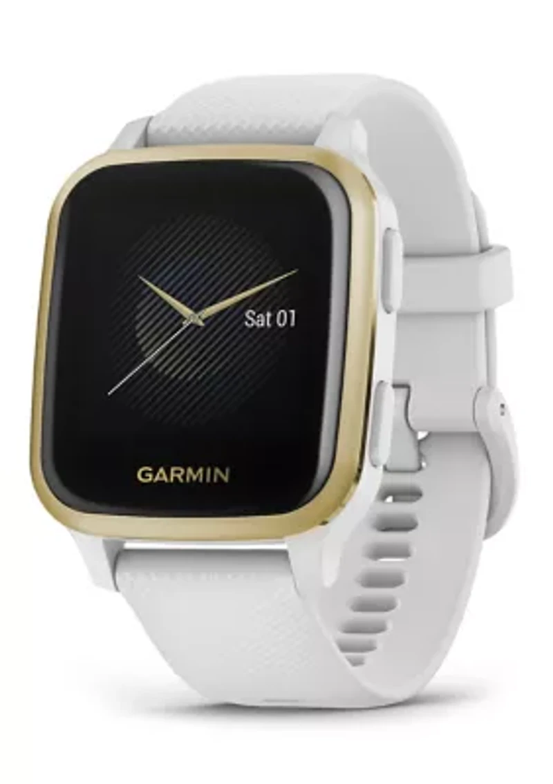 GPS smartwatch with all-day health monitoring Now is the perfect time to move. Featuring a bright color display, the Venu® Sq GPS smartwatch combines daily style with health monitoring and fitness features that inspire you to keep moving. Battery Life: • Up to 6 days (smartwatch mode) • Up to 6 hours (GPS + music mode *select models only*) • Up to 14 hours (GPS mode without music) Battery: Internal rechargeable lithium-ion battery In The Box • Venu Sq – Music Edition • Charging/data cable • Documentation Buckle closure Digital dial Multifunction movement Illumination display Comfort fit Square case 1-year limited liability warranty Imported Product Specifications 40 mm case size Material & Care Rubber band Stainless steel, fiber-reinforced polymer with polymer rear cove Clean with a soft cloth
