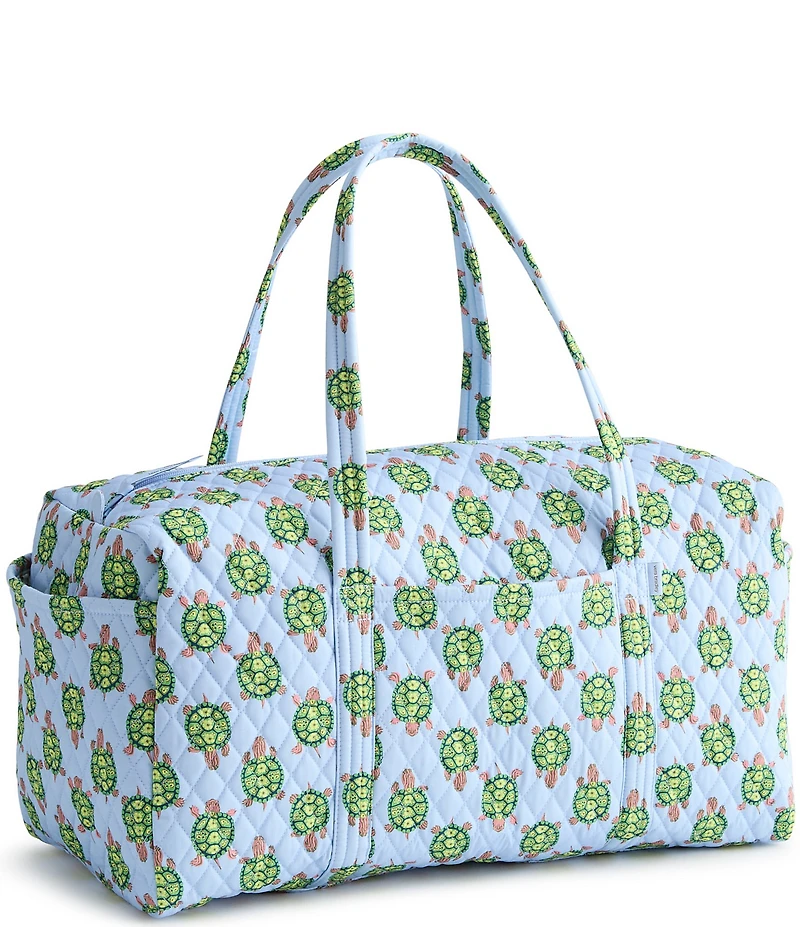 From Vera Bradley, the Slow Dance Turtles Original Large Duffel Bag features: Embrace the spirit of adventure with our Large Original Duffel. Designed for the modern explorer, this spacious duffel offers ample storage space coupled with stylish details, making it the perfect companion for all your travels, from weekend getaways to extended expeditions. Whether you're traveling, hitting the gym or running errands, our duffel bag offers the versatility, durability and style you need to tackle your day with confidence. Premium cotton Exterior features two side slip pockets and a front slip pocket Interior features three slip pockets Zip closure Approx. 12" drop Approx. 22" L x 11.5" H x 11.5" W  Machine wash cold, gentle cycle, only non-chlorine bleach when needed line dry Imported.