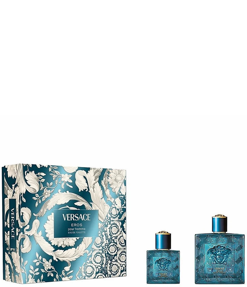 Versace Eros Eau de Toilette is a vibrant and sophisticated fragrance with a fresh, invigorating blend of mint, lemon, and green apple. The heart of tonka bean, amber, and geranium is balanced by a smooth base of vanilla and musk, creating a rich, dynamic scent. The perfect gift for someone special or a treat for yourself. Set Includes: 3.4-oz. Eau de Toilette Spray 1-oz. Eau de Toilette Spray
