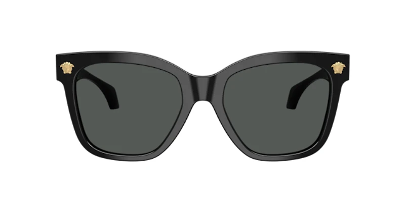 Signature versace glamour takes center stage with the ve4511 square sunglasses. These bold black sunglasses feature sharp angles for a structured, modern look, crafted from durable plastic. Oversized dimensions add a statement-making touch, while iconic medusa embellishments ensure unmistakable brand sophistication. Finished with solid grey lenses and black acetate temples, this feminine design embodies contemporary elegance.