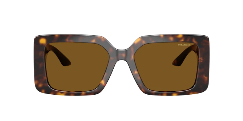 Command attention with the versace ve4505u polarized sunglasses. These oversized square sunglasses feature sharp angles and ultra-wide injected temples for a modern, structured look. Crafted from durable plastic in a tortoise hue and paired with solid brown lenses, they exude effortless luxury. Polarized lenses reduce glare and enhance contrast, ensuring exceptional clarity in any light condition. Elevated with a gold metal greca module, these versace sunglasses embody bold sophistication and glamour—perfect for making a statement wherever you go.
