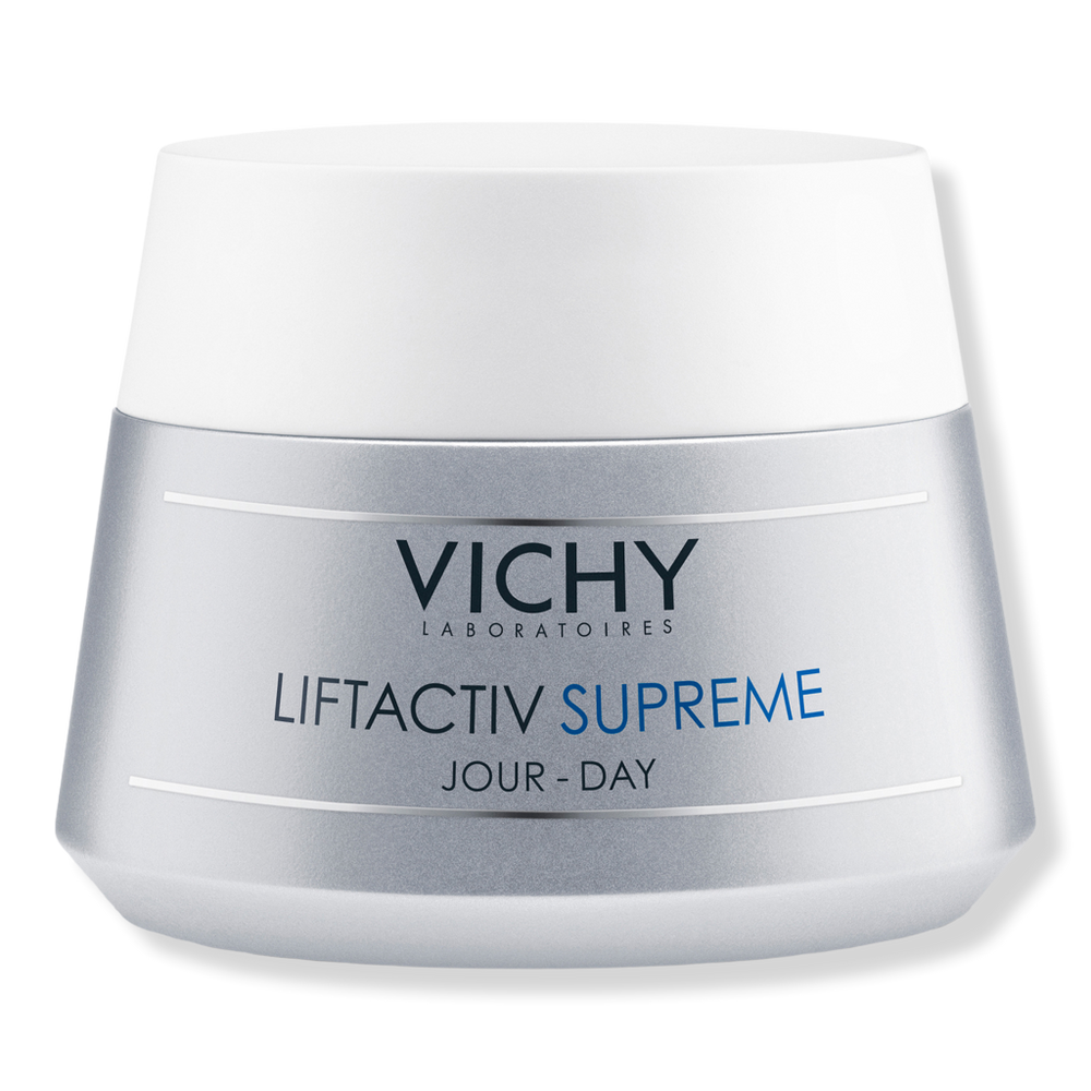 LIFTACTIV SUPREME 1.6OZ. Benefits: Anti aging face moisturizer smooths the look of wrinkles, targets loss of firmness and brightens the complexion. Daily face moisturizer formula designed to improve dryness, dull skin and visible signs of aging. Provides gentle exfoliation to help smooth and soften the skin. Helps fortify the skin's support structure to minimize visible signs of aging with natural origin rhamnose. Helps replenish and reinforce the skin's barrier with mineral-rich Vichy Volcanic Water. Offers antioxidant benefits with neohesperidine. Blurs the look of imperfections and illuminates the skin with 3D Optical Correctors. Light, non-sticky, non-greasy texture. Dermatologist, allergy and sensitive skin tested. After 4 weeks:. 79% agree features look smoother*. 85% agree skin feels more comfortable*. 38% increase in skin firmness**. *Study on 52 women aged 45 to 65, twice daily application over 4 weeks. **Evaluation on 40 women aged 53 to 67. Key Ingredients: Vichy Volcanic Water sourced from French volcanoes features 15 essential minerals to help strengthen the skin's barrier and protect skin from damaging environmental factors like UV rays and pollution. Natural origin rhamnose is a naturally-derived plant sugar that has been proven to boost the skin's support structure and improve visible signs of aging. 3D Optical Correctors instantly blur the look of imperfections and illuminate the skin. Neohesperidine is a powerful antioxidant that provides a long-term lifting effect. Formulated Without: Parabens.