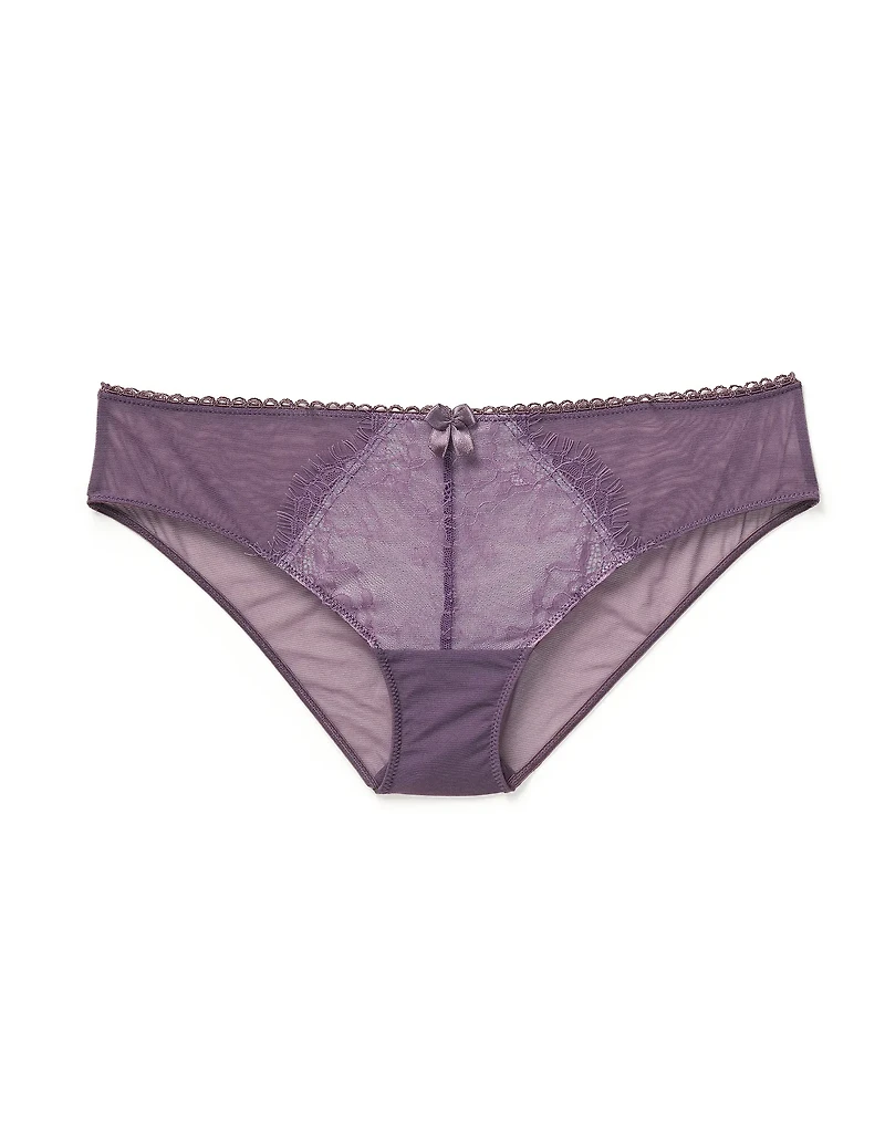 The Victoria Bikini Dark Purple lace bikini is a romantic-fashion standout. Effortlessly chic, this style is A Bikini Panty for a timeless silhouette. (Available in sizes XS-XL.)