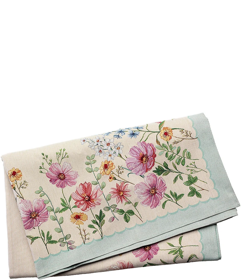 From VIETRI, this tablecloth features: Create an inviting atmosphere with the Tavola Floral Tablecloth, featuring a charming garden scene on a durable, thick linen. Cotton, Acrylic, Polyester Blend Tavola Collection Floral print Measures approx. 102" L x 63" W Machine wash, tumble dry Imported.