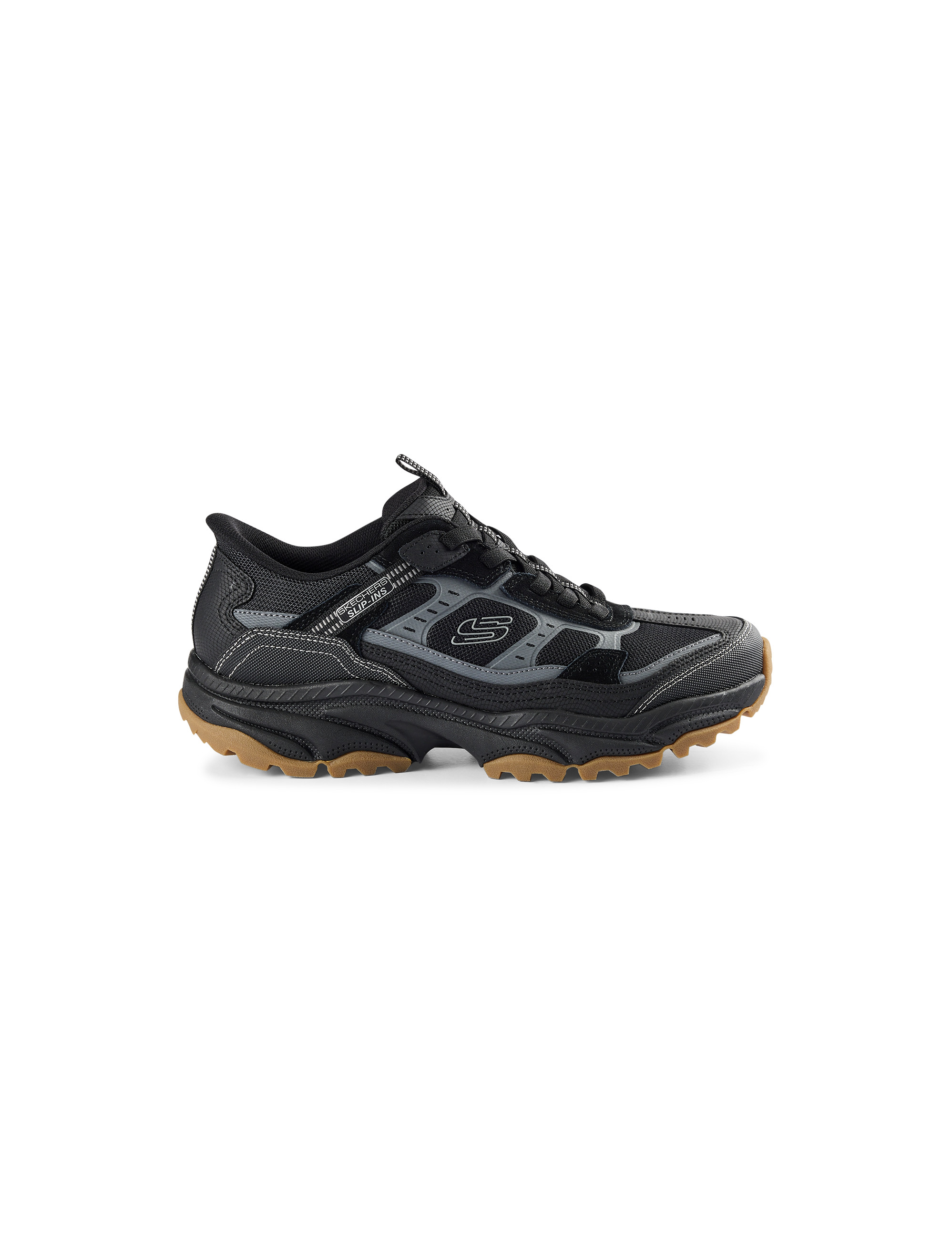 Take the trails in feet forward comfort with these Skechers slip ins. The outdoor trail design features a leather and synthetic upper with stretch laces, Air-Cooled Memory® insoles and rugged traction outsoles. The exclusive Heel Pillow® technology securely holds each foot in place.