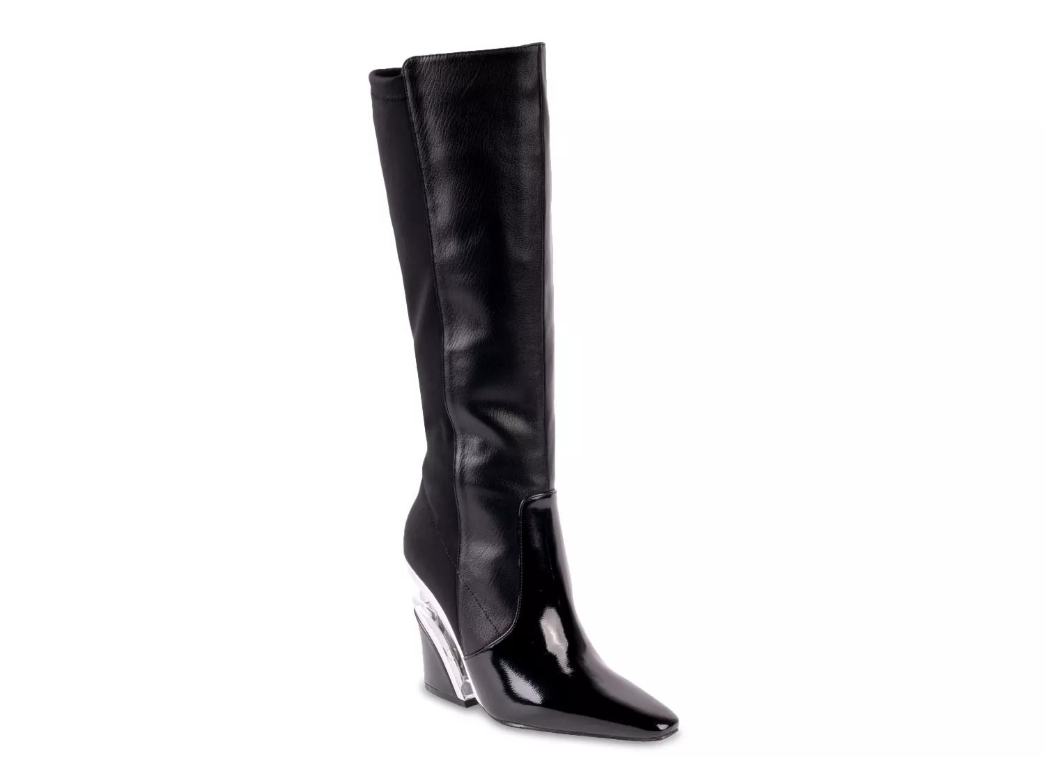 Strut in sophisticated style with the Ninety Union Villa boot. A stretch half-knit upper, modern square toe, a lightly cushioned footbed and faux wedge heel make this zipper boot versatile.