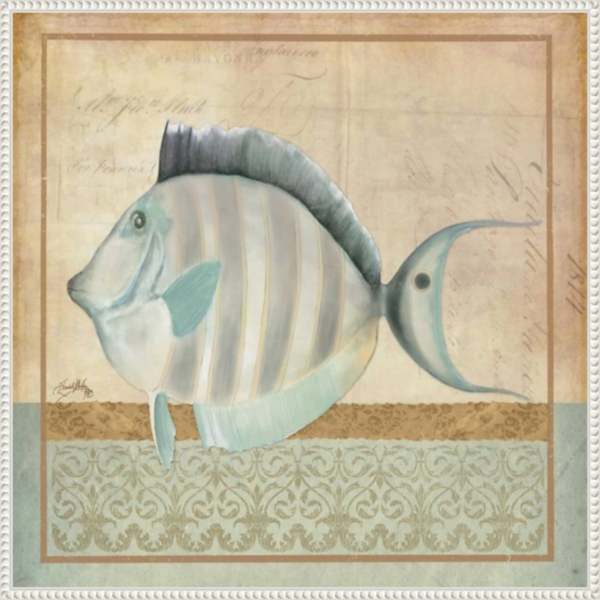 Fill your home with memories of the ocean with this Vintage Fish III Framed Canvas Art Print. The touch of marine life will energize your space with coastal charm! Overall dimensions Width: 30" Depth: 2" Height: 30" Distinctively printed on stretched canvas Uses high-quality, fade-resistant inks White beaded frame around wrapped canvas Fish subject Hues of tan, blue, white, gray, and brown Vintage style Artist: Elizabeth Medley Weight: 5 lbs. Hangs from back-mounted hardware Care: Dust with a soft, dry cloth. This item is available at Kirklands.com only, not available in stores. Please note: this item cannot be shipped to APO/FPO addresses.