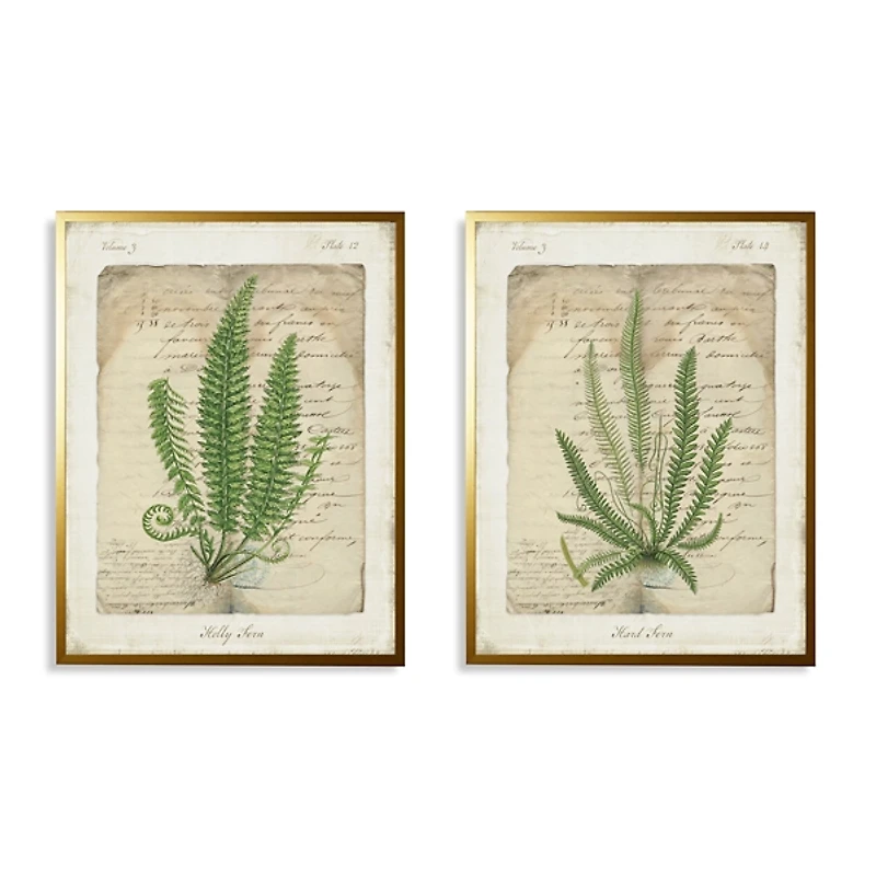 Spruce up any office, study, or reading nook with this set of Vintage Green Ferns Framed Art Prints! Featuring lustrous gold frames and detailed fern illustrations, this set makes any wall more eye-catching. Set includes two (2) art prints Each framed print measures 18L x 1W x 24H in. Gold frame finish Features fern subjects Encased in glass Hues of tan, green, beige, and brown Weight: 1 lbs. Hangs from back-mounted hardware Care: Dust with a soft, dry cloth. This item is available at Kirklands.com only, not available in stores. Please note: this item cannot be shipped to APO/FPO addresses.