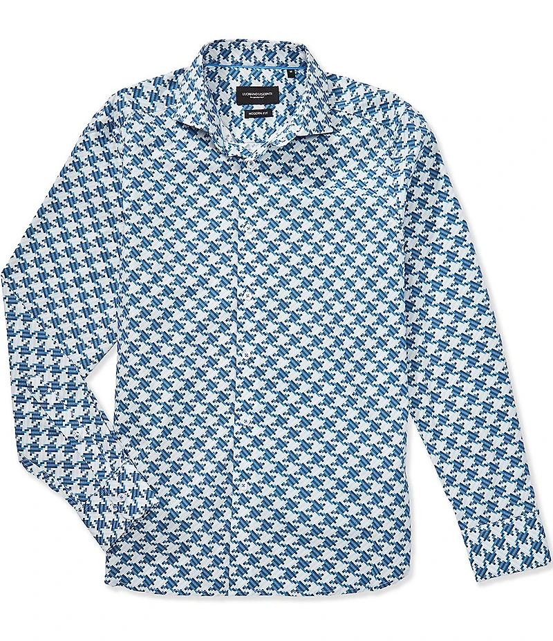 From Visconti, this shirt features: Geo print Hidden button-down collar Long sleeves with two-button cuffs Button-front closure Curved hem Natural stretch fabric Organic cotton/elastane Dry clean Imported.