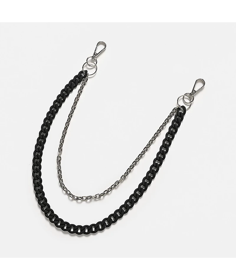 Add alternative edge to any outfit with the Paint black pocket chain from Vitriol. The chain has two strands, one silver and one black, for a counterculture look.
