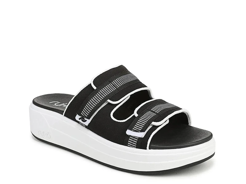 The Viv Slide sandal by Ryka features a sleek fabric upper with adjustable hook-and-loop straps for a custom fit. This pair also rocks a cushioned EVA footbed and a dual-density sole for stability and support, offering all-day comfort with a stylish platform design.