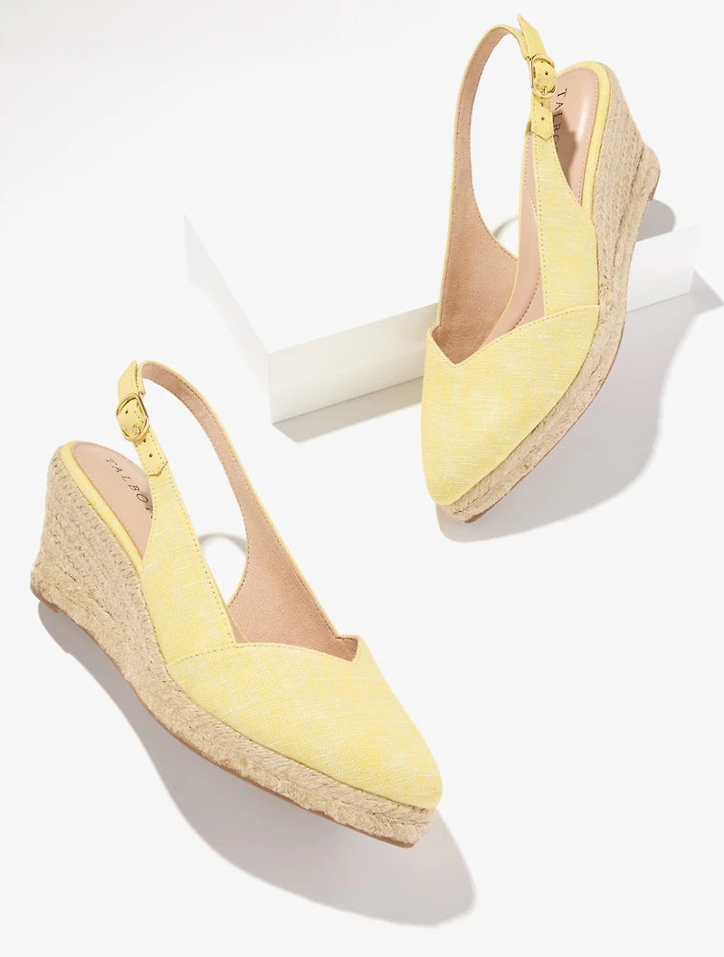 Effortlessly go from day to night in our must-have slingback wedges. Crafted from breezy cross dyed linen. Espadrille comfort with a low wedge heel. You’ll love the memory foam footbed. Heel and arch padding for extra comfort and support. Flexible outsole for improved stability.