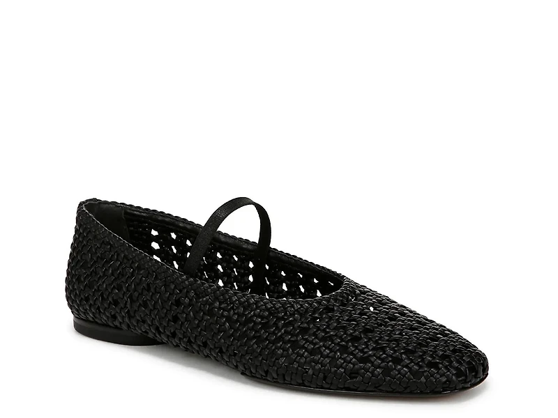 Look effortlessly chic with the Vivian Mary Jane ballet flat from Vince. This slip-on is crafted from responsibly sourced LWG Gold-rated leather to make it both eco-friendly and elegant. Its modern oval topline and crochet-inspired woven design with a slender elastic strap add a unique touch. The cushiony foam footbed and leather sole keep you comfortable all day.
