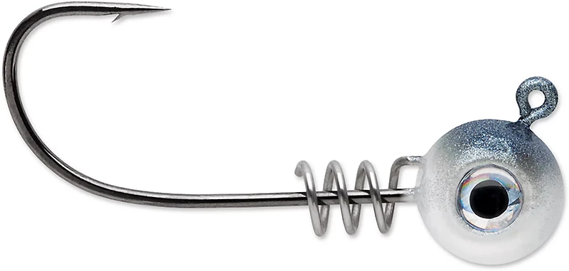 Secure your catch with the VMC Hybrid 1/4 oz Swimbait Jigs 4-Pack. The high-carbon steel and forged shank construction affords durability, while the hybrid wide gap maximizes hook sets and offers increased strength. The wide diameter spring keeper securely locks soft plastics in place, and the 3-D holographic eyes lend a lifelike appearance.