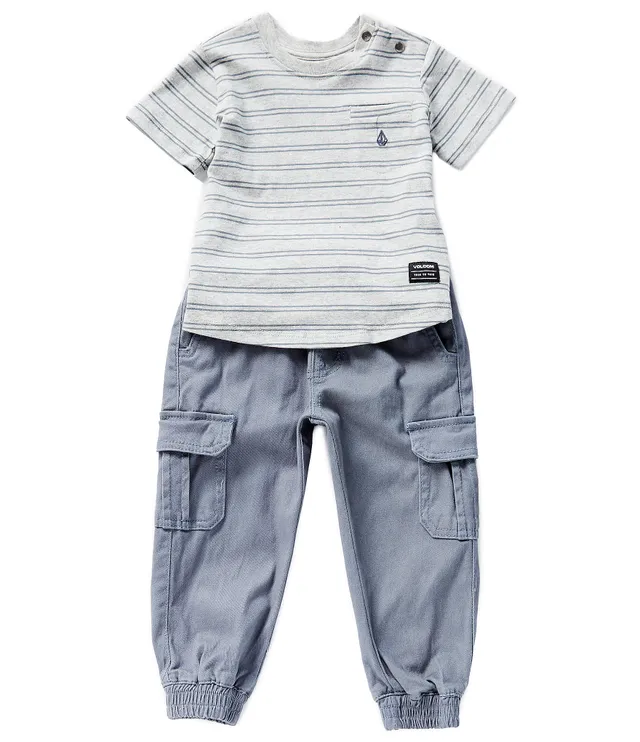 Volcom Baby Boys 12-24 Months Short Sleeve Striped Jersey T-Shirt & Solid Twill Cargo-Pocket Jogger Pant Set