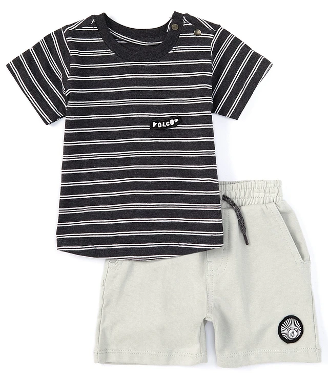 Volcom Baby Boys 12-24 Months Short Sleeve Striped Pocket T-Shirt & Solid Shorts Set