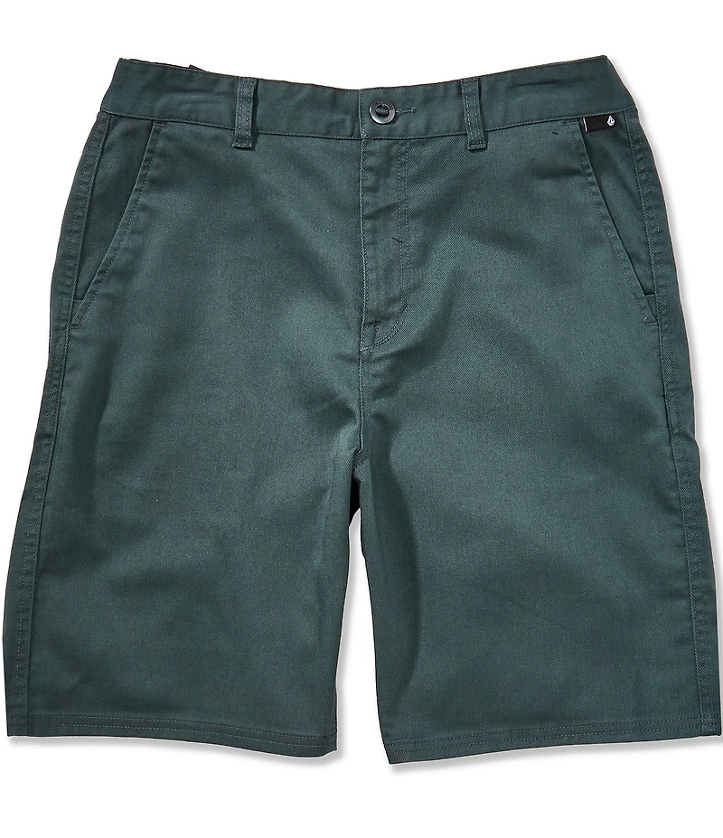 From Volcom, these shorts feature: Slash hand pockets Volcom woven label above the wearer's back-right pocket Back split pocket Volcom branded signature details and branding Zip/button front closure Workwear-inspired belt loops Classic fit Approx. 11.5" inseam, 22" outseam Pre-laundered cotton/polyester/elastane twill Machine wash/tumble dry Imported.