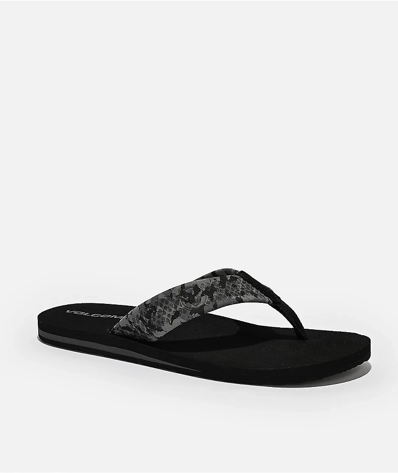 The designers at Volcom present the Daycation II Hawaii flip flop sandals in a classic black colorway. The foam upper strap showcases a grey camo pattern for modern pop.