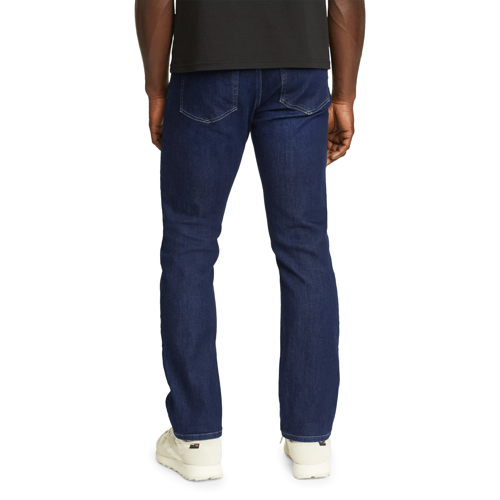 The most comfortable jeans you'll ever wear. Cotton is blended with recycled Repreve® polyester and spandex to create an exceptional performance denim. The Eddie Bauer Signature active waistband is constructed with a clean finish to minimize bulk. Great for travel.