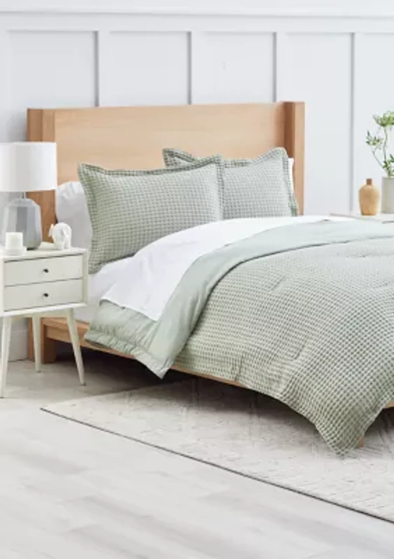 This waffle weave comforter set from Crown & Ivy® offers a cozy casual update to your bedroom. Queen Set includes: Quilt: 90" x 90" 2 Shams: 20" x 26" King Set includes: Quilt: 104" x 92" 2 Shams: 36" x 20" 3-piece set Imported Belk Exclusive Material & Care Cotton Machine washable