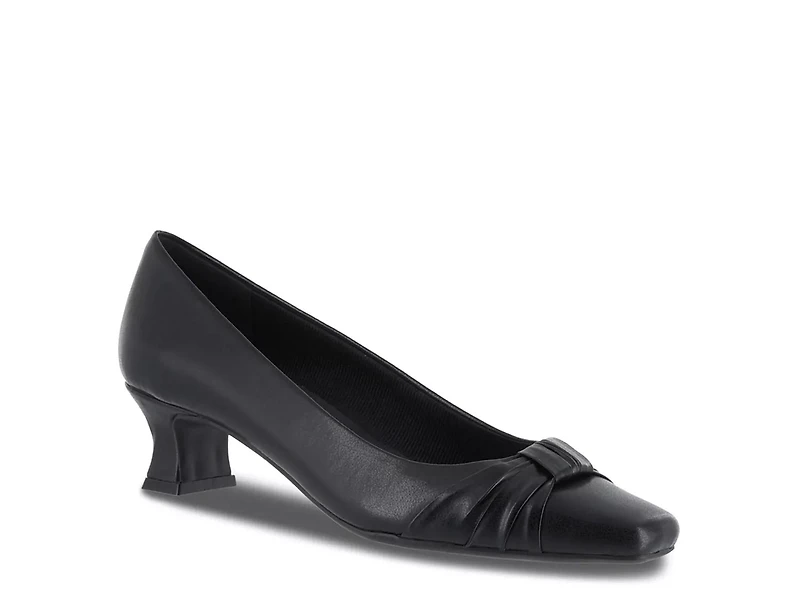 The Easy Street Waive pump features a ruched square toe and a sturdy yet flattering flaired heel. The comfortable, padded insole and super flexible outsole is the perfect combination to wear to work or an evening event.