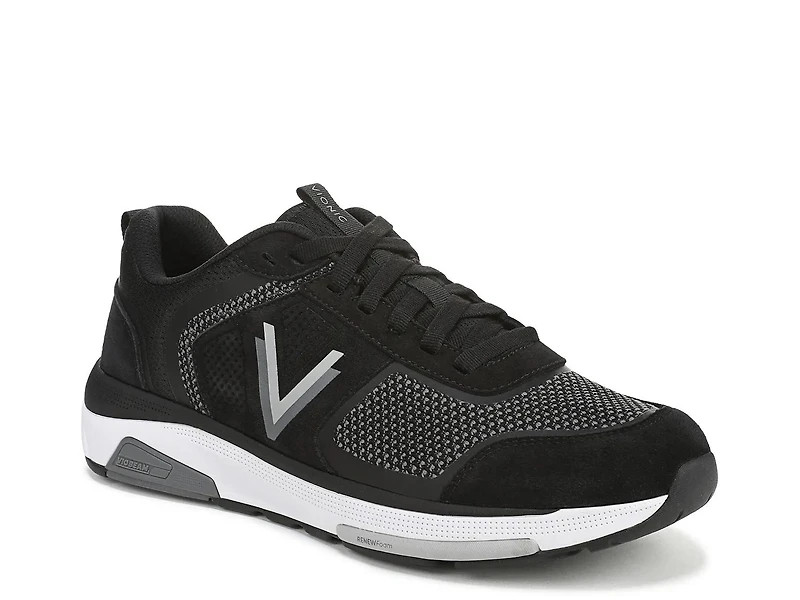 The Vionic Walk Stride Knit sneaker is engineered for those who won't settle for less. Designed with a soft, breathable knit upper, this lace-up sneaker features anti-roll construction, lateral rigidity, and a biomechanically crafted footbed that promotes nonstop motion. High-rebound cushioning and VIO MOTION technology with contoured arch support, a deep heel cup, and flexible forefoot deliver stability, shock absorption, and balanced alignment from heel to toe. Plus, it's made to meet the Global Recycled Standard.