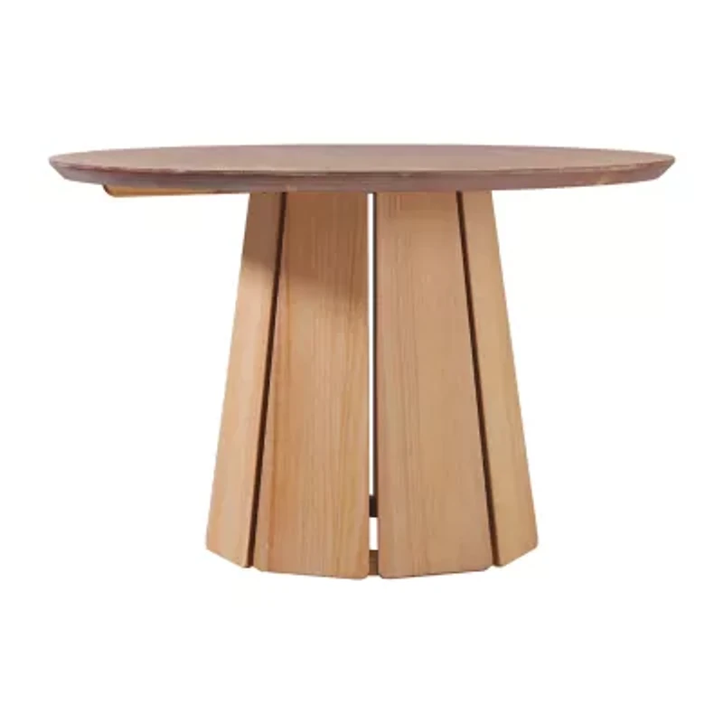 This 48-inch round dining table is the perfect statement-making piece for your kitchen or dining room. Made from solid wood sourced from renewable forests, it stands up to everyday wear and brings a touch of the nature into your home. The round tabletop design style gives you more elbow room while dining. It comfortably seats up to four people, with plenty of room leftover for your dishes, snacks, and decor. The unique paneled wood pedestal base gives the design an elevated twist that stands out every time you're at the table. Whether you bring this table to your breakfast nook, kitchen, or dining room, you'll love its perfect balance of aesthetics and functionality.