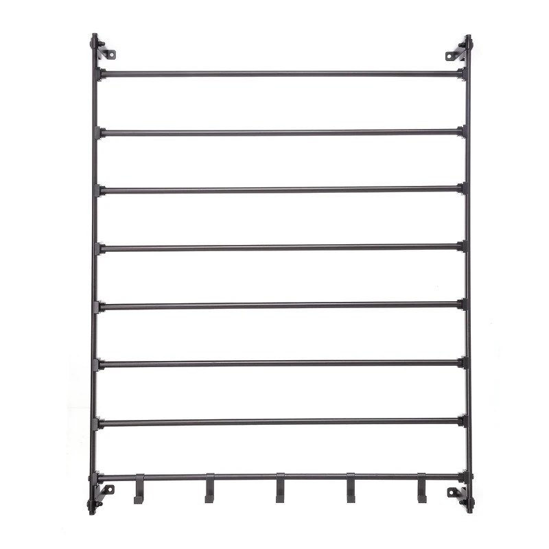 This wall mounted ribbon storage is the ideal solution for makers, creators and self-made artists. Whether you're shipping out packages, making wreaths, sewing clothing and other creative endeavors, this wall mounted rack can hold all your ribbon, conveniently available, visible and ready to be cut to the right size for its purpose.Details:Available in multiple colors27.9" x 4.3" x 35.6" (70.9cm x 11cm x 90.5cm) overall size7 removable bars5 fixed hooksHardware includedSteel metal, ABS plastic and polypropyleneIdeal for storing ribbon, paper rolls, tape and other craft suppliesAdult assembly requiredHolder only, additional items not includedCAUTION: Maximum 1.6 lb. (0.7 kg) load limit per bar. Maximum 13.2 lb. (6 kg) load limit per holder.