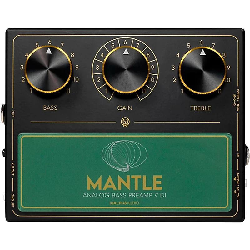 Walrus Audio Mantle Bass preamp/DI delivers Sapphire transformer tone shaping, up to +18dB gain and balanced XLR bass DI preamp output clarity.