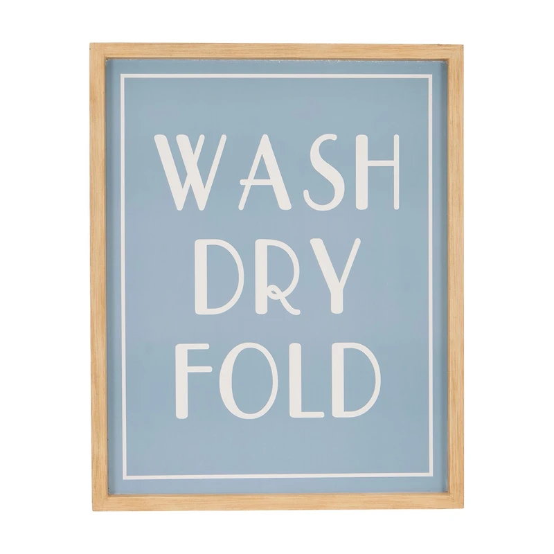 Transform your laundry room into a stylish and organized haven with our charming "Wash Dry Fold" Wall Art. This delightful piece combines functionality with a touch of elegance, making laundry day a little more enjoyable. The wall art features a serene blue background adorned with crisp white lettering that clearly spells out "Wash Dry Fold," providing a simple yet effective reminder of the essential laundry steps. The clean lines and modern typography add a contemporary flair, while the natural wood frame offers a warm, rustic touch that complements any decor style. This versatile piece is perfectly sized to fit in small spaces or to be part of a larger gallery wall. It’s lightweight and easy to hang, making it a hassle-free addition to your home. Crafted from high-quality materials, this wall art is designed to be durable and long-lasting, ensuring it will be a beloved feature in your laundry room for years to come. Whether you're looking to refresh your space or searching for the perfect housewarming gift, the "Wash Dry Fold" Wall Art from pOpshelf is an excellent choice. Add a bit of charm and organization to your laundry routine with this beautifully designed wall art. It's the perfect blend of practicality and style, making your laundry room a more pleasant place to be.