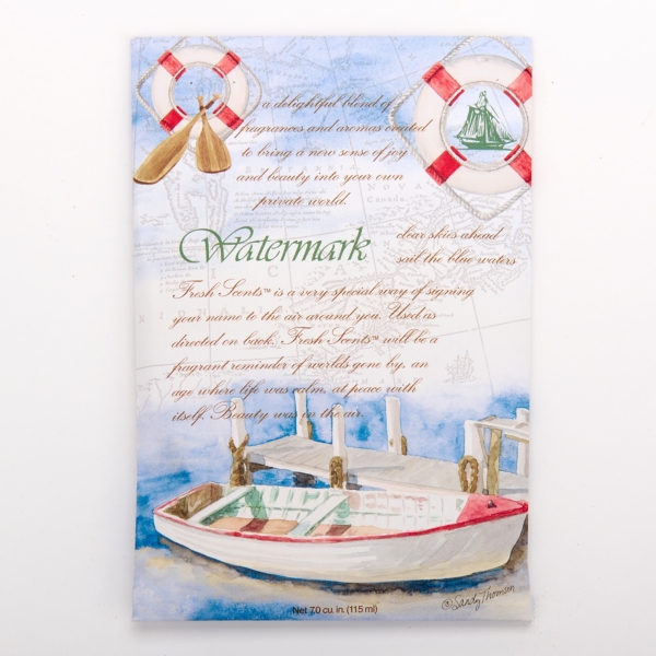 Freshen up your space with our delightful Watermark Clean Sachet. This sachet blends coastal-inspired citrus scents to provide a pleasant aroma no matter how you choose to use it. Sachet packet contains 3.9 ounces of fill Blended scents of green floral, lime, citrus, patchouli, and amber Great for use in bathrooms, vacuum bags, trash cans, closets, cars, and gift Paper packaging A Fresh Scents sachet Made in the USA Care: Shake sachet to refresh; avoid contact of package and contents with furniture, fabrics, specialty carpets, finished surfaces, plastics, acrylics, and painted items as may cause damage and/or discolorations. Keep out of direct sunlight. Contact your local Kirkland’s store for availability. Quantities and selection may vary by location.