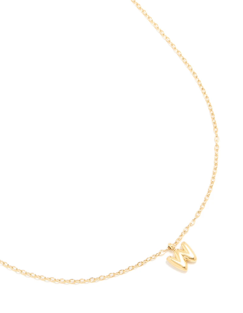 Waterproof Gold Plated Stainless Steel Mini Bubble Letter W Necklace