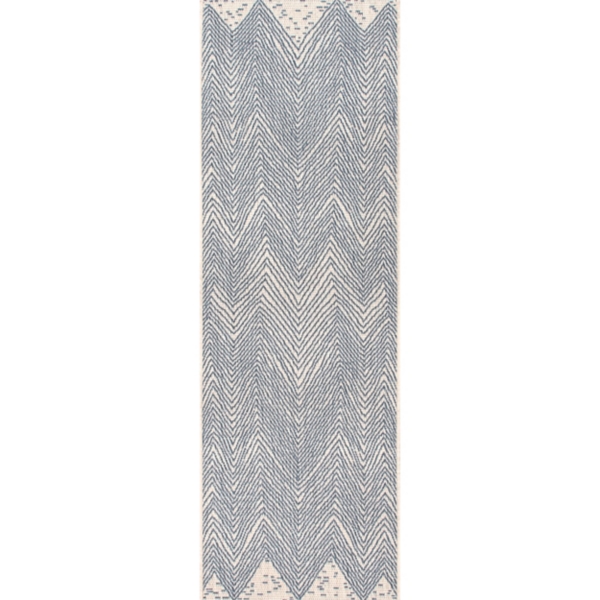 Elevate your space with this Wavy Chevron Indoor/Outdoor Runner. Place this floor covering in your living room with modern décor or on your patio to add a pop of color. Made from durable fibers, it's built to last in outdoor conditions while maintaining its beauty. Create the home of your dreams with this easy to care for and pet-friendly area rug. Rug measures 2 ft. in length x 8 ft. in height Crafted of 100% polypropylene Machine made construction Wavy chevron pattern Hues of white and blue Water resistant and easy-to-clean Outdoor safe Rug pad not included Care: Hose down and spot treat for any mild stains using rug cleaner. This item is available at Kirklands.com only, not available in stores. Please note: this item cannot be shipped to APO/FPO addresses.