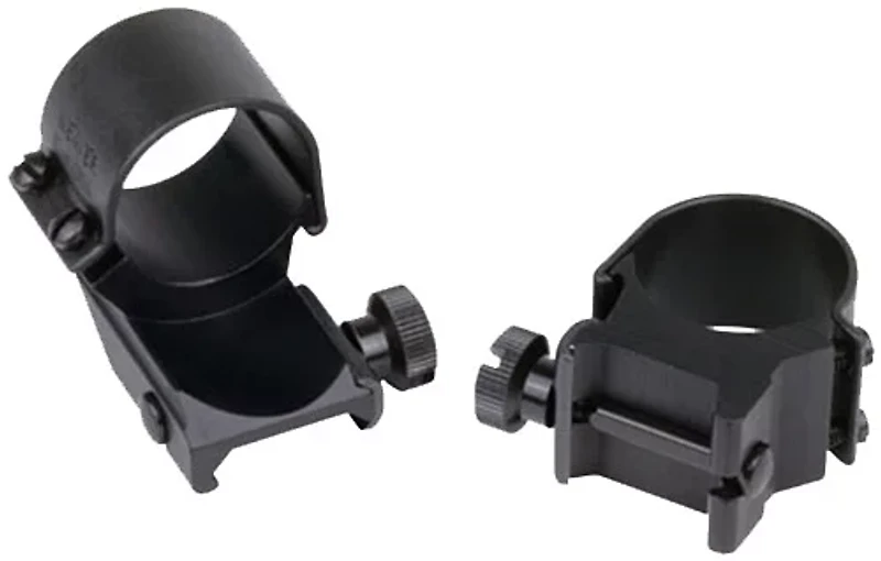Customize the eye relief on your scope with the Weaver® Detachable 1" High Top-Mount Rings, which are designed to let you position your scope up to 0.75" forward or backward. Loosening the thumb nuts allows you to switch to iron sights with ease, and the wide top straps hold firm at zero even under jarring recoil. 1" tube diameter. High height.
