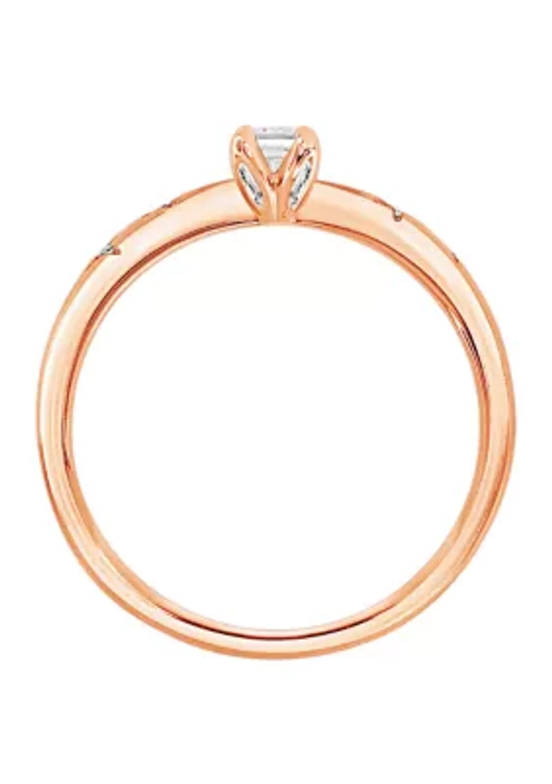 WEB 14KR 1/3CTW EM/RD DIA ENG RING 5 Diamonds 5 Color rating: I Clarity rating: I/I2 Polished finish Prong setting Imported Product Specifications 0.35 Material & Care Metal, Rose gold Clean with a soft cloth.