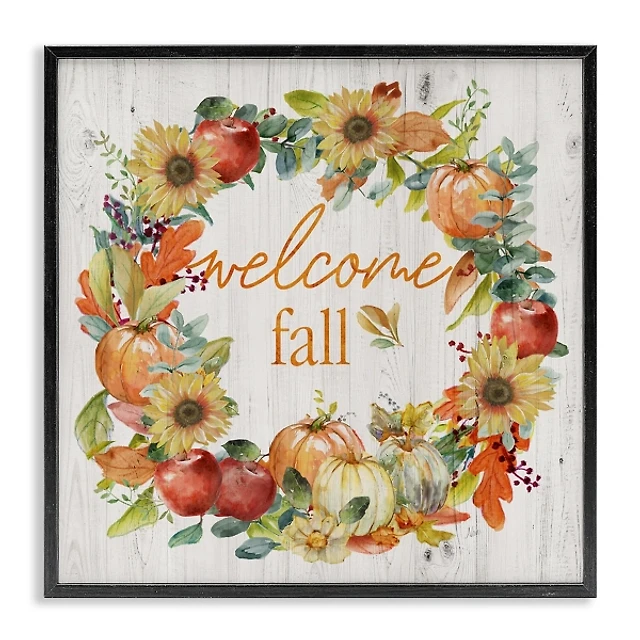 Stupell Industries Welcome to Sunflower Patch Rustic Floral Wreath Black Framed Wall Art