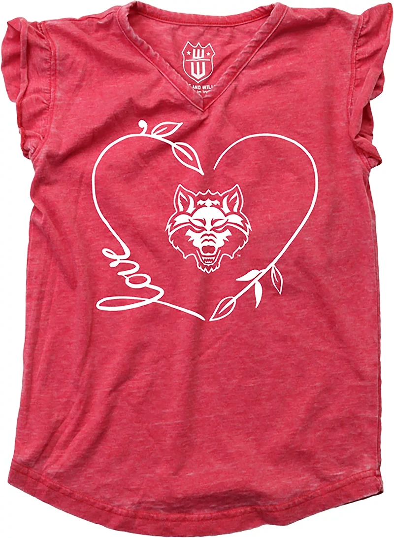 Wes and Willy Girls' Arkansas State University Heart Ruffle Sleeve Burnout Tank Top in Chattanooga, TN