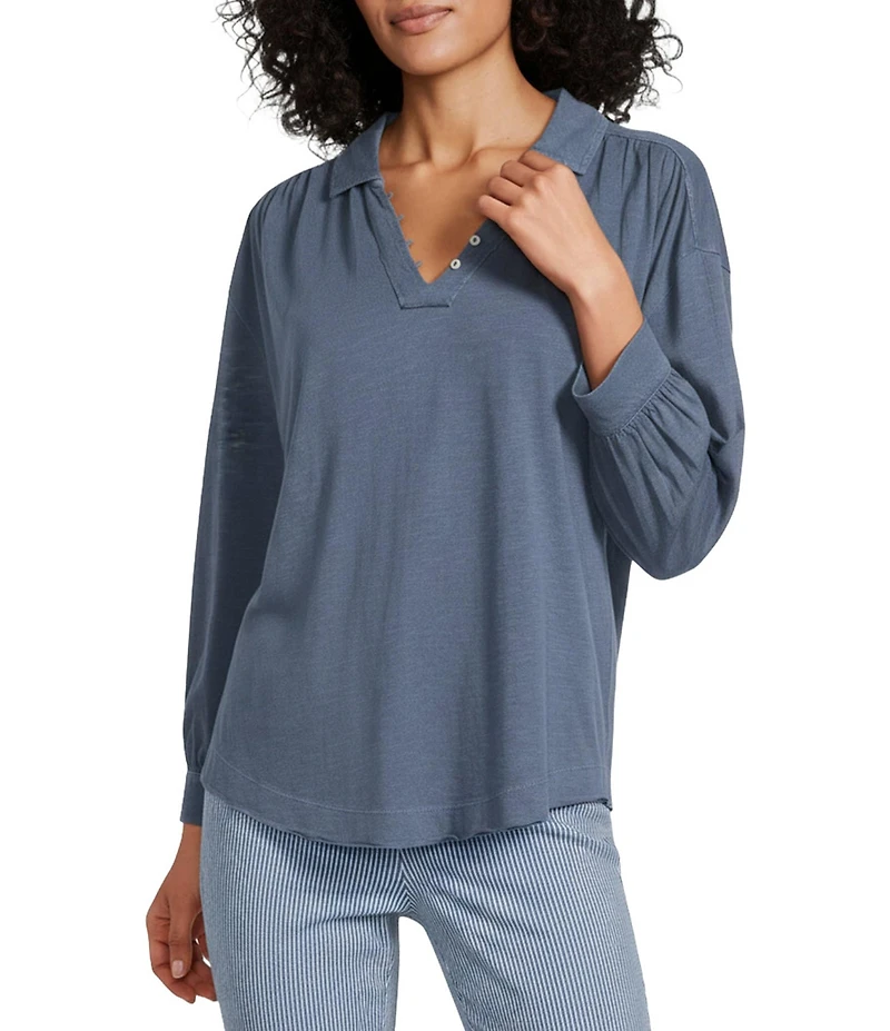 From Westbound Petite, this top features: Slub knit fabrication V-neckline Collared 3/4 sleeves Pullover construction Cotton/modal Machine wash/tumble dry Imported.