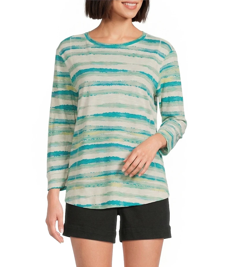 Westbound Petite Size Seagrass Stripe 3/4 Sleeve Knit Crew Neck Top in Chattanooga, TN