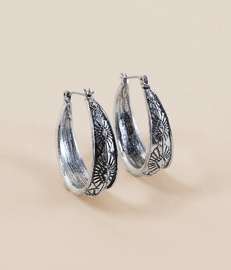 Engraved metal stud earring Measures 1 1/4" in diameter